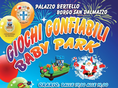 Baby park e giochi gonfiabili a Borgo San Dalmazzo a Palazzo Bertello con apertura al pomeriggio dal 26 al 30 dicembre 2025 e dal 2 al 6 gennaio 2026; sabato e domenica: 20 e 21 dicembre 2025 e dal 10 gennaio al 1 marzo 2026.