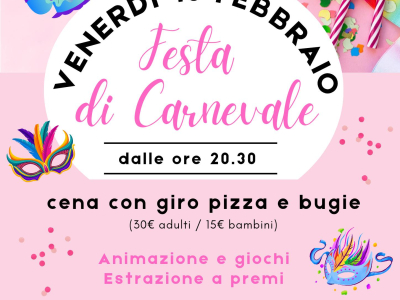 Venerdì 13 Febbraio dalle ore 20:30, presso l'Albergo Ristorante Nazionale, la Pro Loco San Giacomo organizza una "Festa di Carnevale". Ci saranno giro pizza, bugie e poi animazione, giochi e una estrazione a premi. I più piccoli, che giocheranno insieme ad un'animatrice, verrann