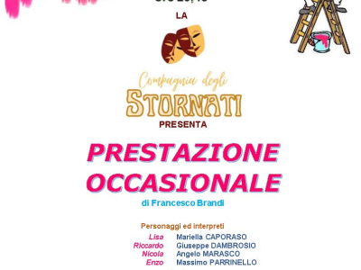 Sabato 14 febbraio 2026, alle ore 20,45, presso il Teatro Civico “FEDERICO GARELLI” di Villanova Mondovì, la “Compagnia degli Stornati” presenta la commedia brillante in due atti “Prestazione occasionale” di Francesco Brandi che ha vinto il premio “Achille Campanile 2017”. L’ingr