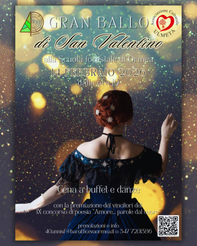 Sabato 14 febbraio, la Scuola Forestale di Ormea organizza il Gran Ballo di San Valentino, con una ricca cena a buffet a cura dei ragazzi dell'IIS Giolitti Bellisario di Mondovì e serata danzante.